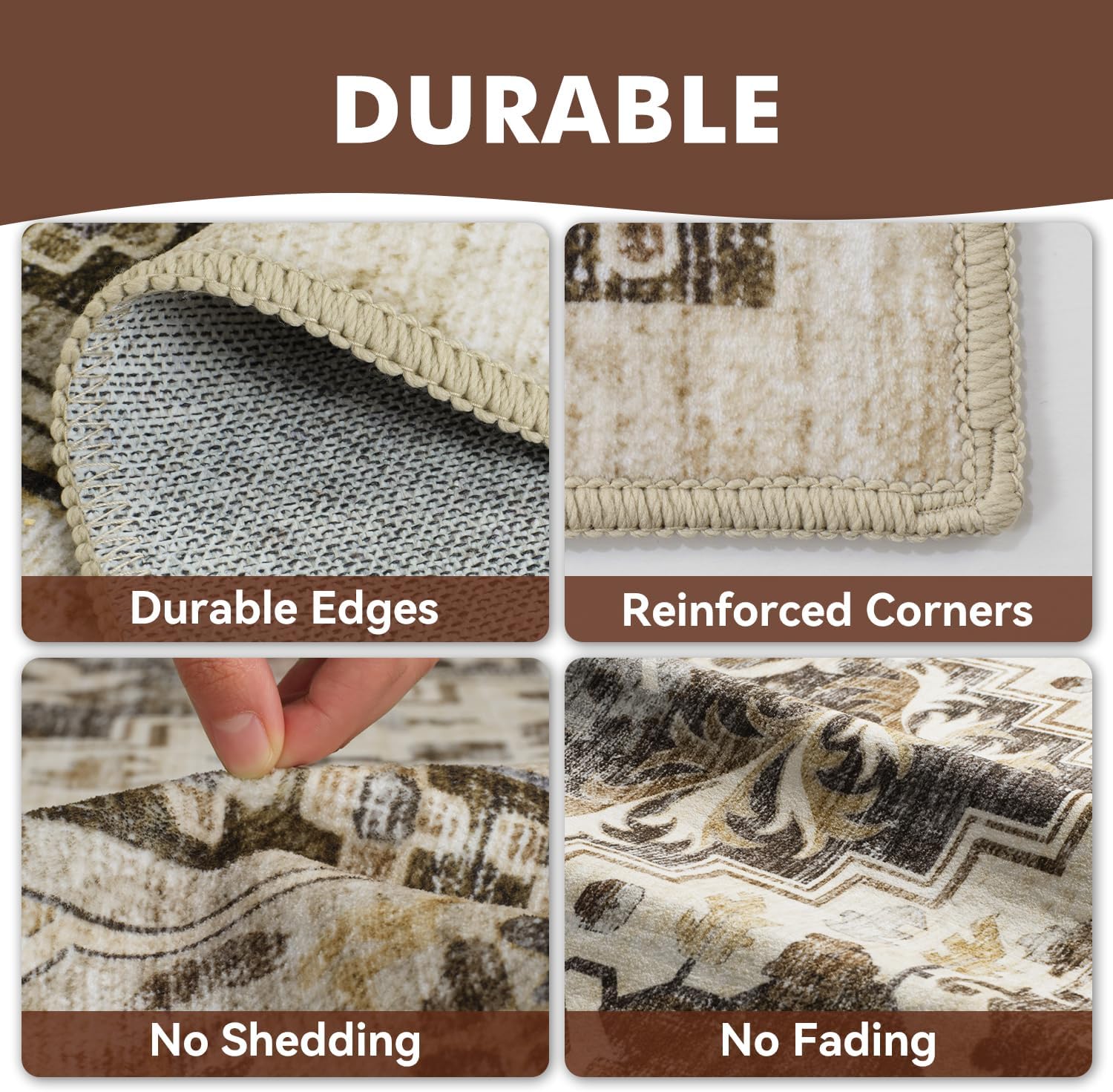 Brown Washable 5x7 Area Rugs for Living Room Rug Bedroom Rug-Carpet Neutral Moody Vintage Traditional Dining Room Rugs Office Soft Comfortable Non Slip