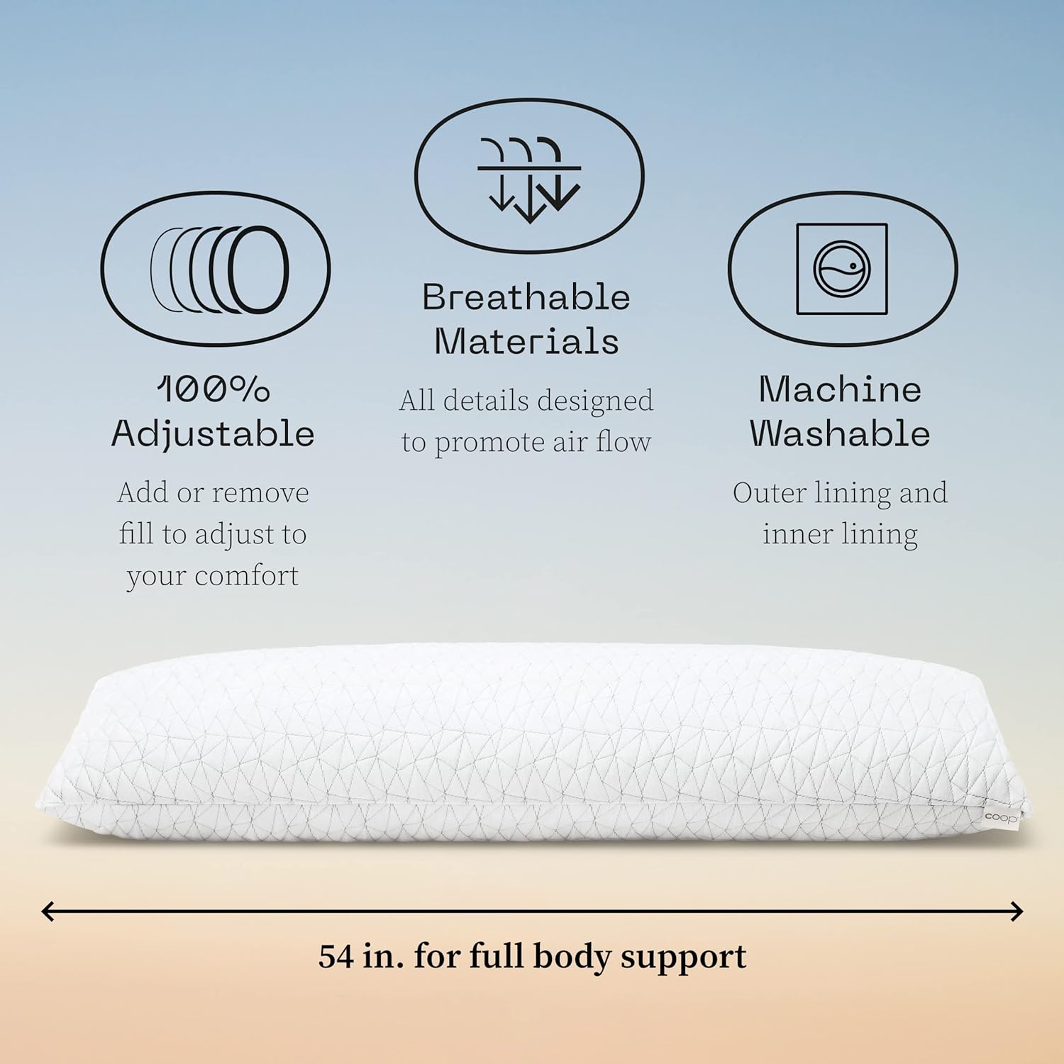 Coop Home Goods Original Adjustable Body Pillow, 20x54 Long Pillow for Back, Shoulder, Hip and Knee Support, Side Sleeper Body Pillows for Adults with Memory Foam & Washable Cover