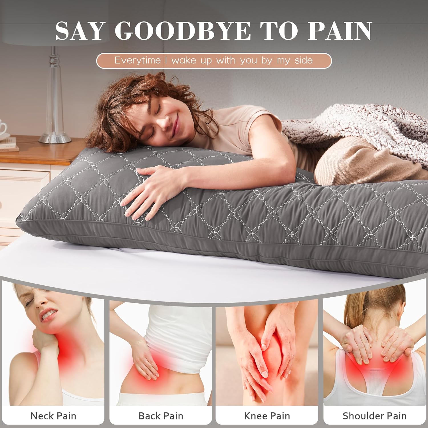 Decroom Memory Foam Body Pillow for Adults, Ultra-Soft Full Body Pillow with Diamond Quilted Cover, Support for Side Sleepers - Machine Washable, 20x54 Inch, Dark Gray