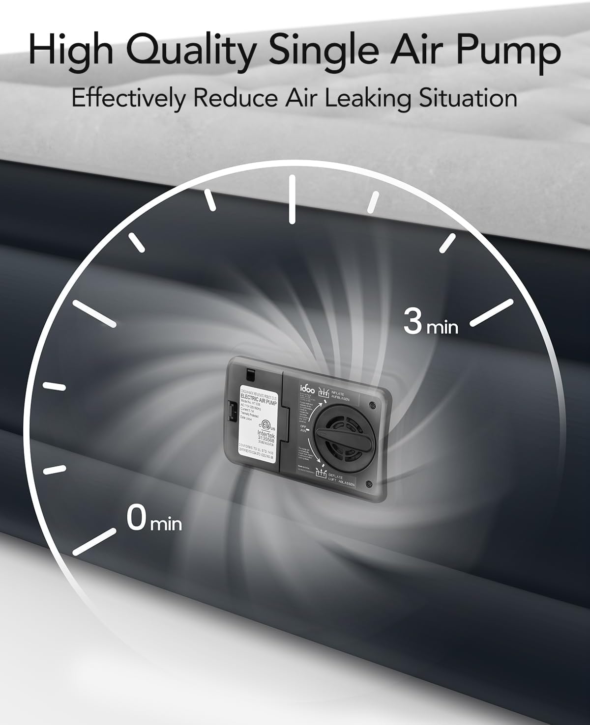 iDOO Queen Air Mattress with Built in Pump, 18 Raised Comfort Blow up Mattress, Upgraded Four Chamber Inflatable Mattress for Guests, Home and Camping, colchon inflable, Portable Air Bed, 650 lbs Max