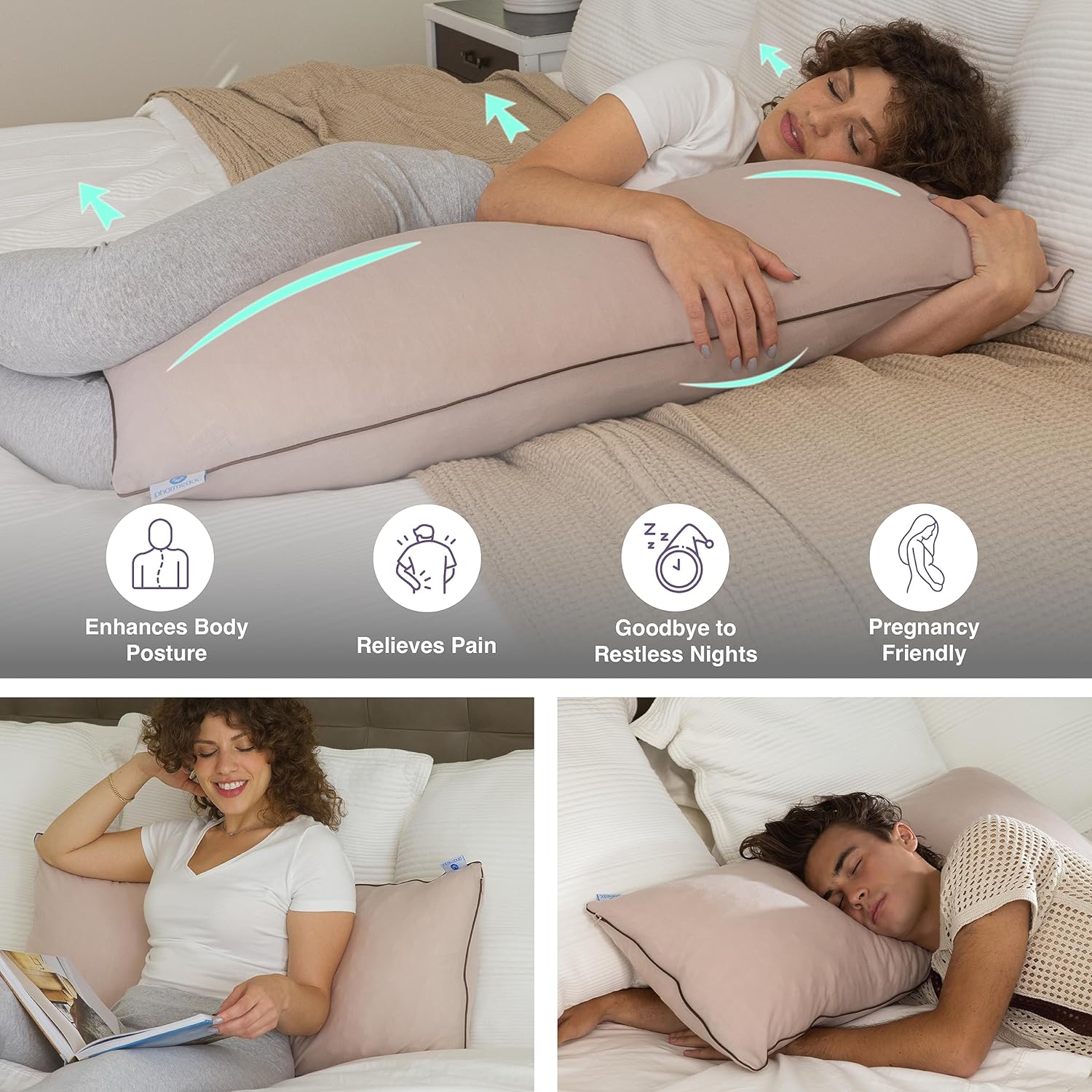 Pharmedoc Body Pillow, Pregnancy Pillows, Side Sleeper Pillow, Long, Memory Foam Pillow, Mocha