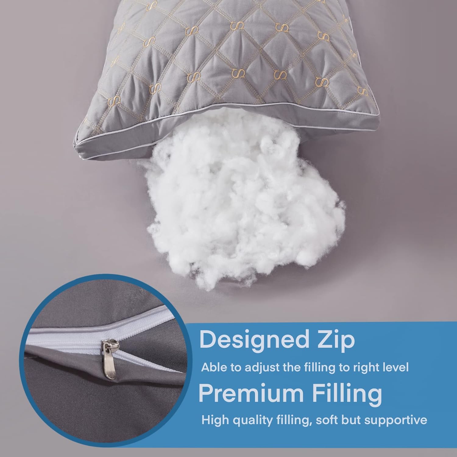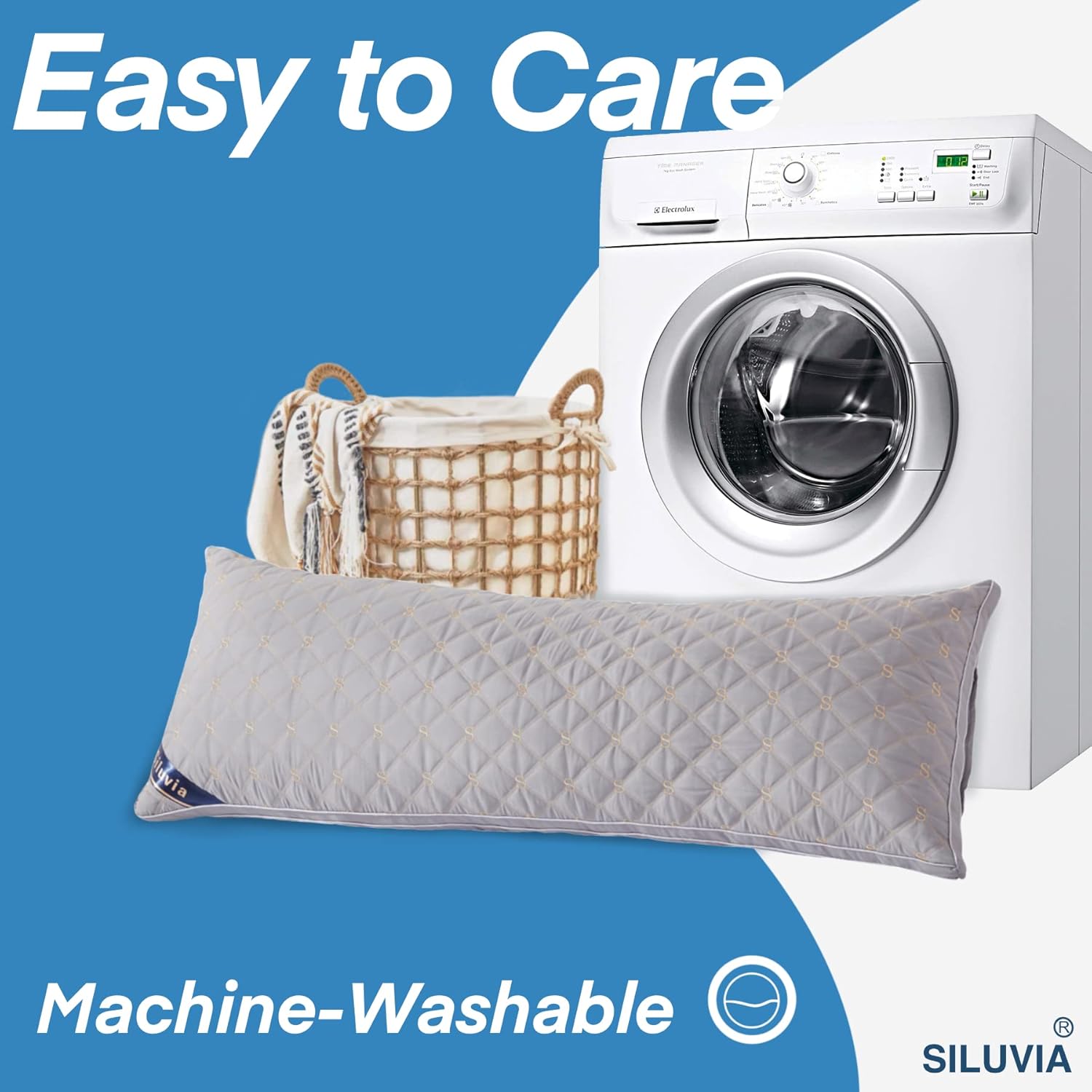 Siluvia Full Body Pillow for Adults-Premium Adjustable Loft Quilted Fluffy Body Pillow for Side Sleeper Quality Plush Down Alternative Long Bed Pillow Gray Pillow