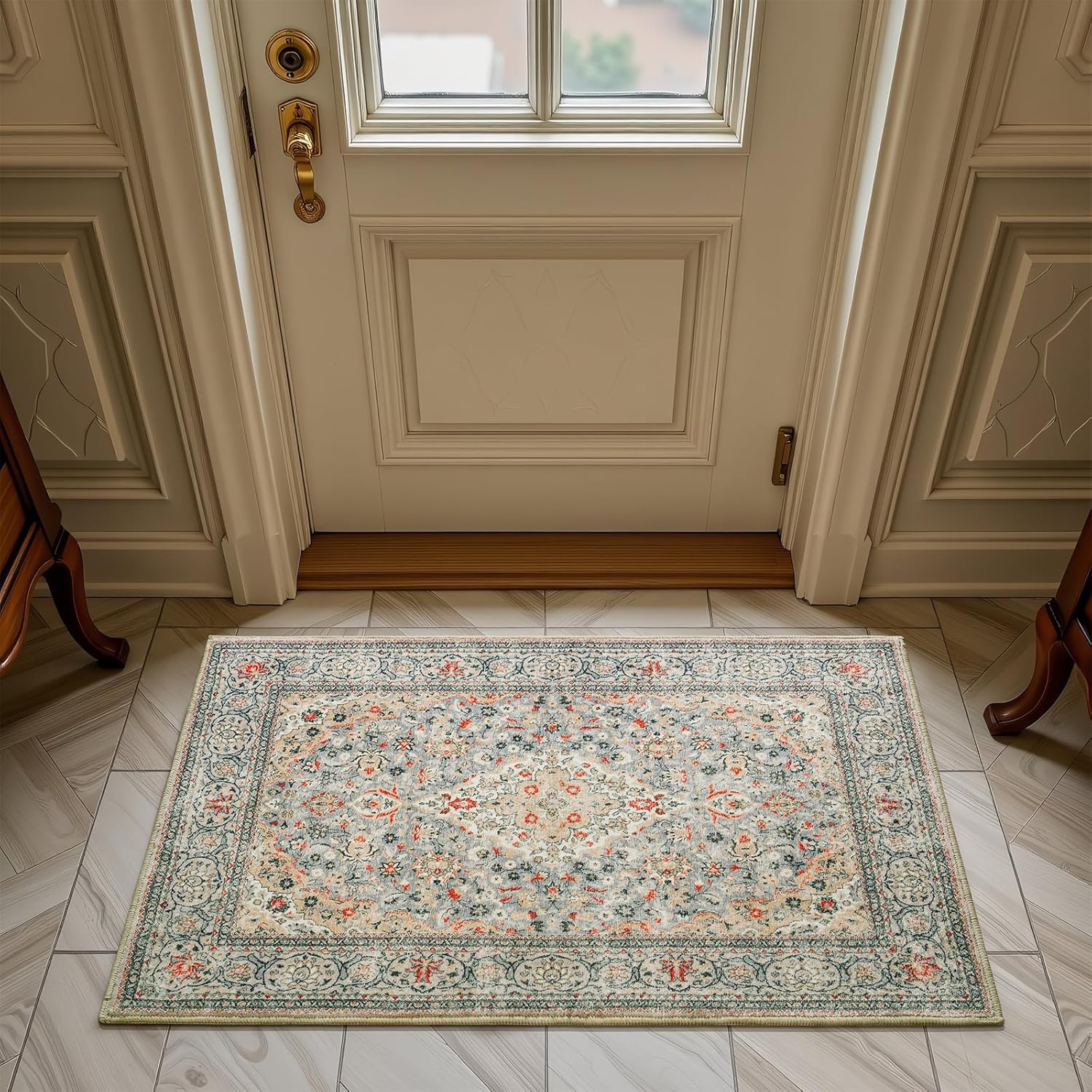 Washable Rug 4x6, Beige Area Rugs Non Slip, Indoor Low Pile Carpet with Rubber Backing for Living Room Kitchen Bathroom Entryway Office Bedroom