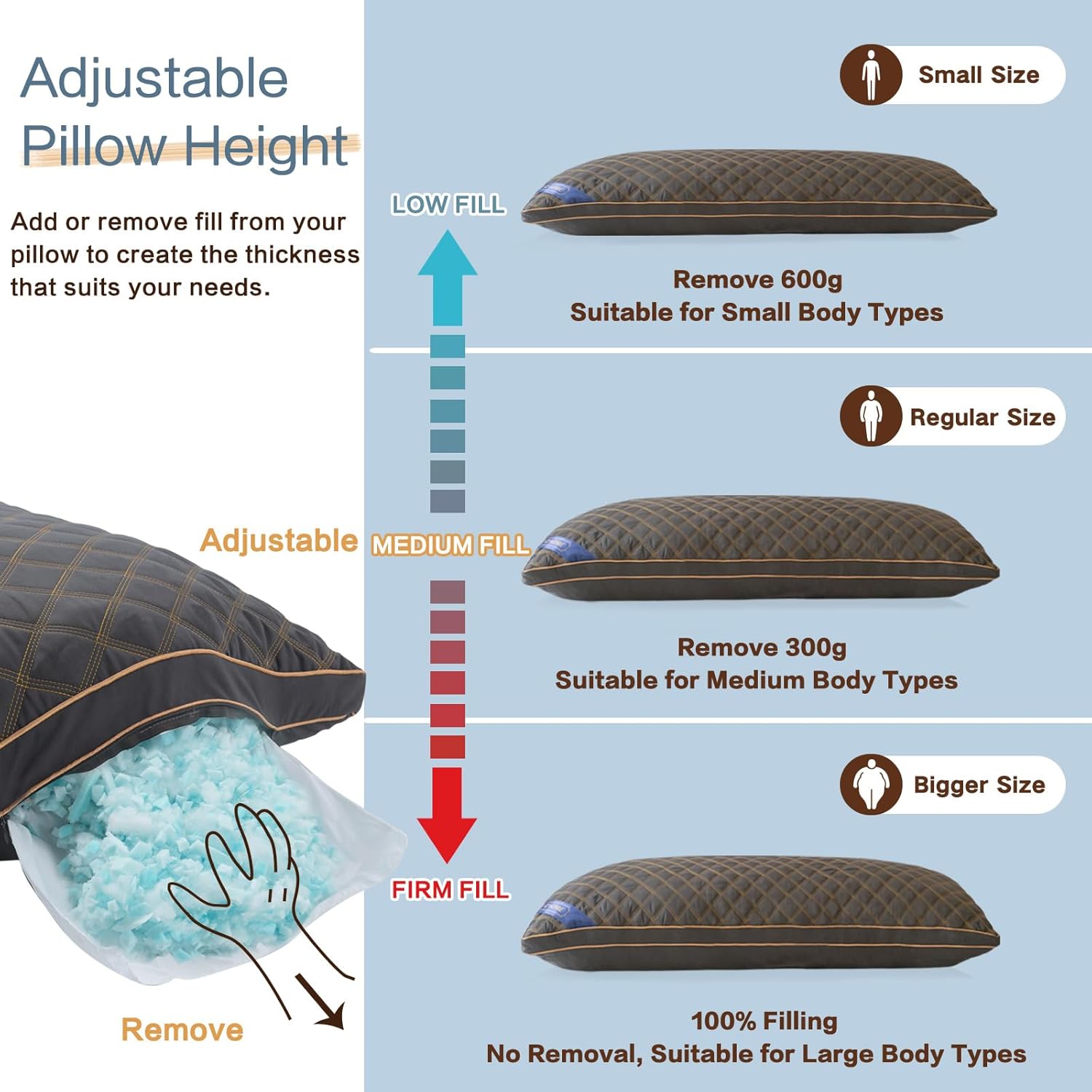 YZ HOME Long Body Pillow for Adults - Firm Body Pillow Insert with Shredded Blue Memory Foam, Adjustable Height, Soft Support for Side Sleeping, Pregnant Women, Washable (20x54 Inch, Grey)
