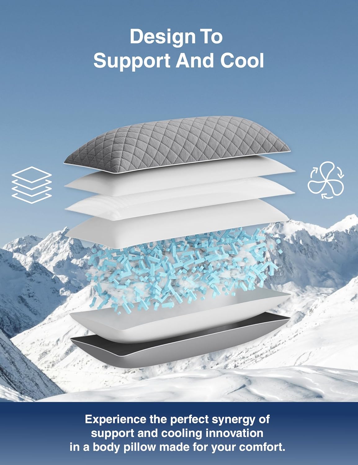 ZonLi Cooling Body Pillow for Adults Grey, Quilted Support Long Pillow with Ice Silk Fabric - Orthopedic Pillow for Side Sleepers, Back Pain, Pregnancy & Hot Sleepers (20x54 Inches)