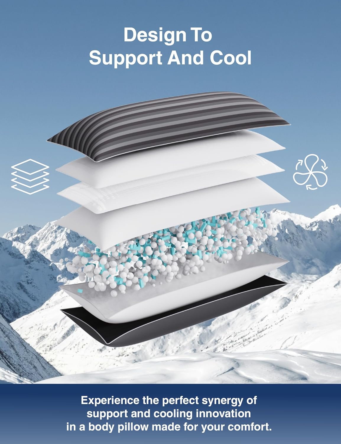 ZonLi Cooling Body Pillow for Adults, Long Pillow for Bed, Firm Body Pillow for Side Sleeper, Memory Foam Full Length Body Pillows Large -20x54 inch, Stripe